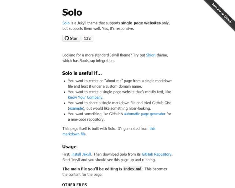 Solo is a Jekyll theme that supports single-page websites only, but supports them well. Yes, it’s responsive.